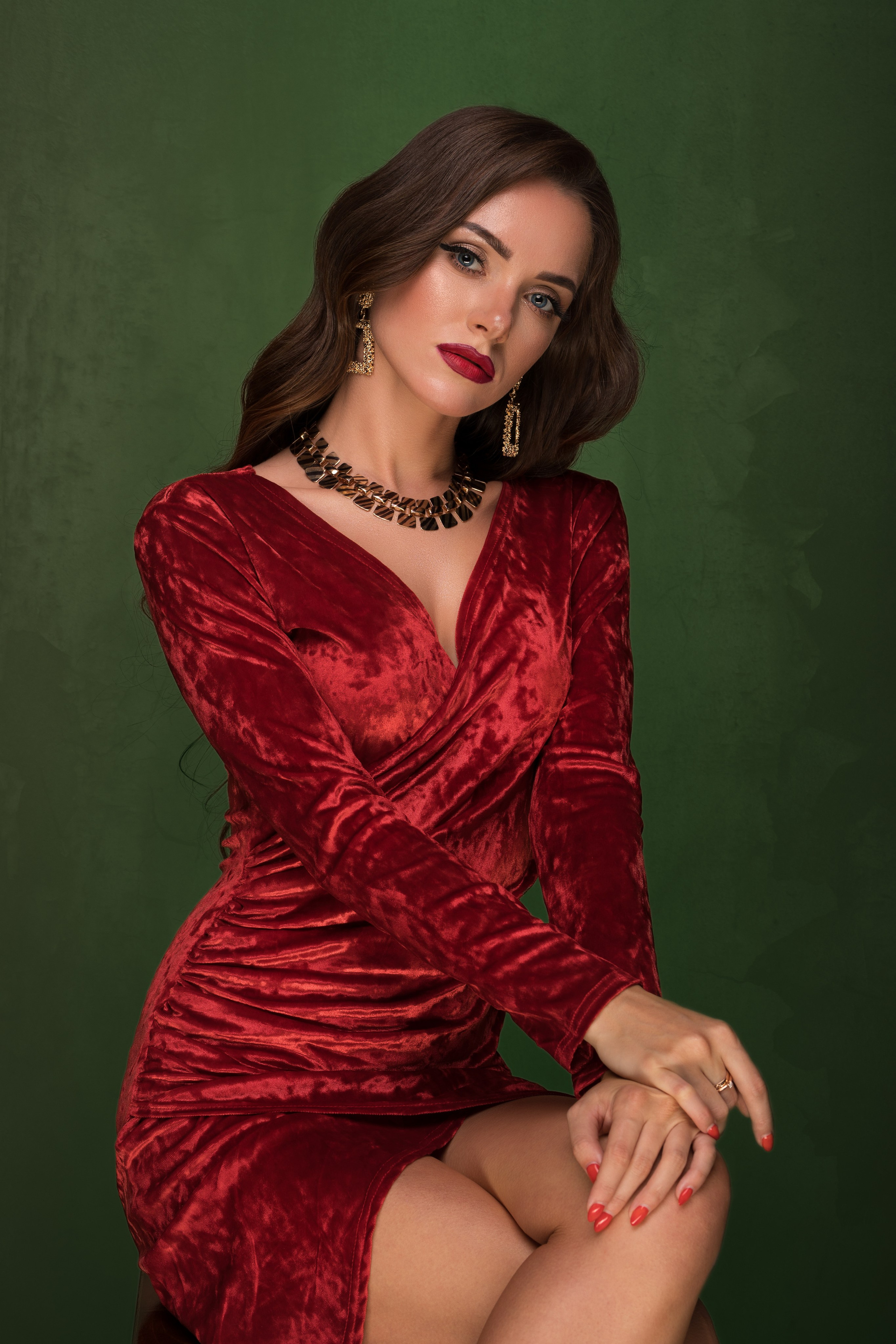 Студийная съемка с Екатериной в красном платье для «себя»